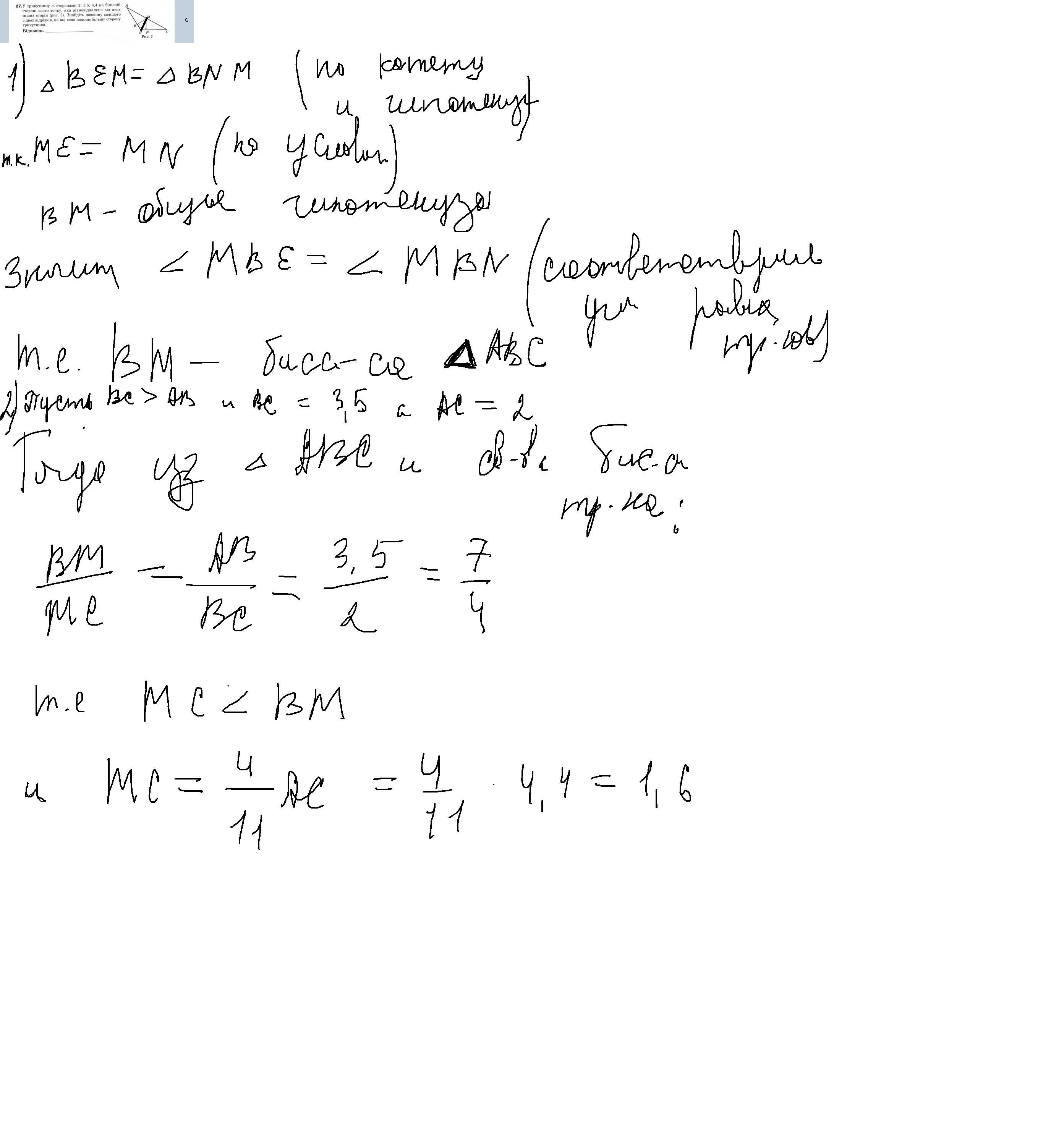 АМ/МС=АВ/ВС= 3,5/2=7/4⇒MC