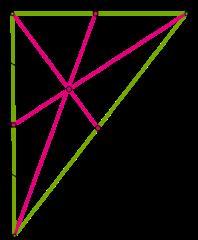 Три отрезка пересекаются в одной точке. Найди рисунок, на котором изображены медианы треугольника.