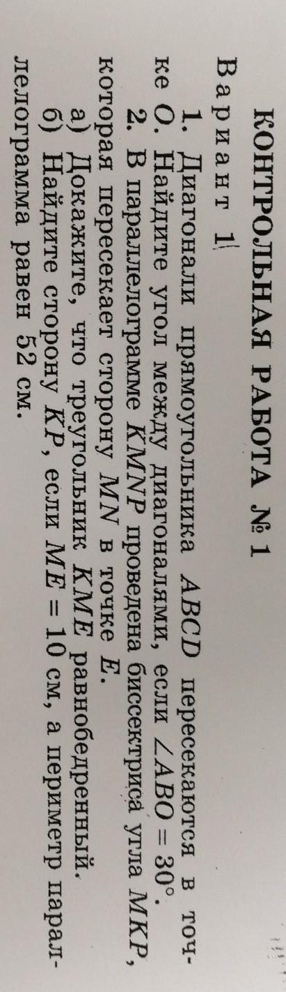 1)В прямоуг. и.пересеч диагоналей АО=ВО=DO=CO,следоват угол ВАО=CDO=DCO=ABO=30°