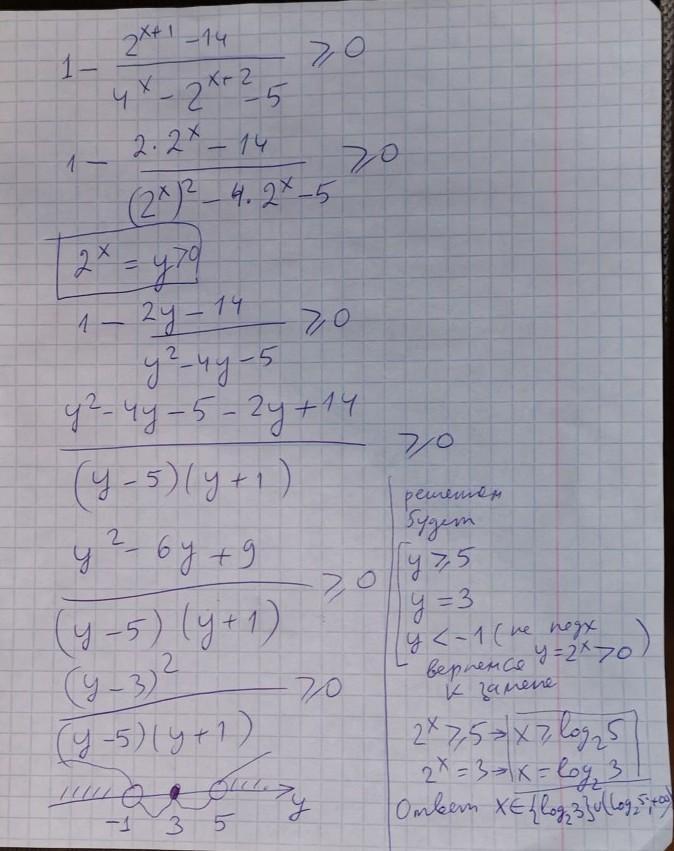 решение неравенства методом замены уходим от степени и методом интервалов решаем полученное неравенство