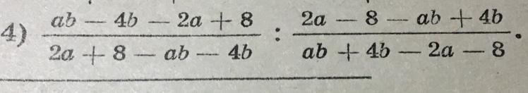 (ab-4b-2a+8)/(2a+8-ab-4b) : (2a-8-ab+4b)/(ab+4b-2a-8) =