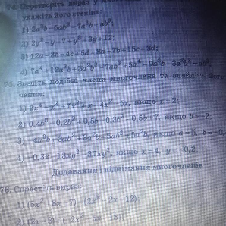 Знайдіть подібні члени многочлена та знайдіть його значення