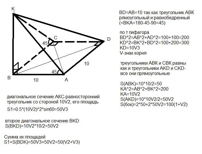 (Основою піраміди КАВСD є квадрат АВСD зі стороною 10 см. Грані КАВ та КСВ