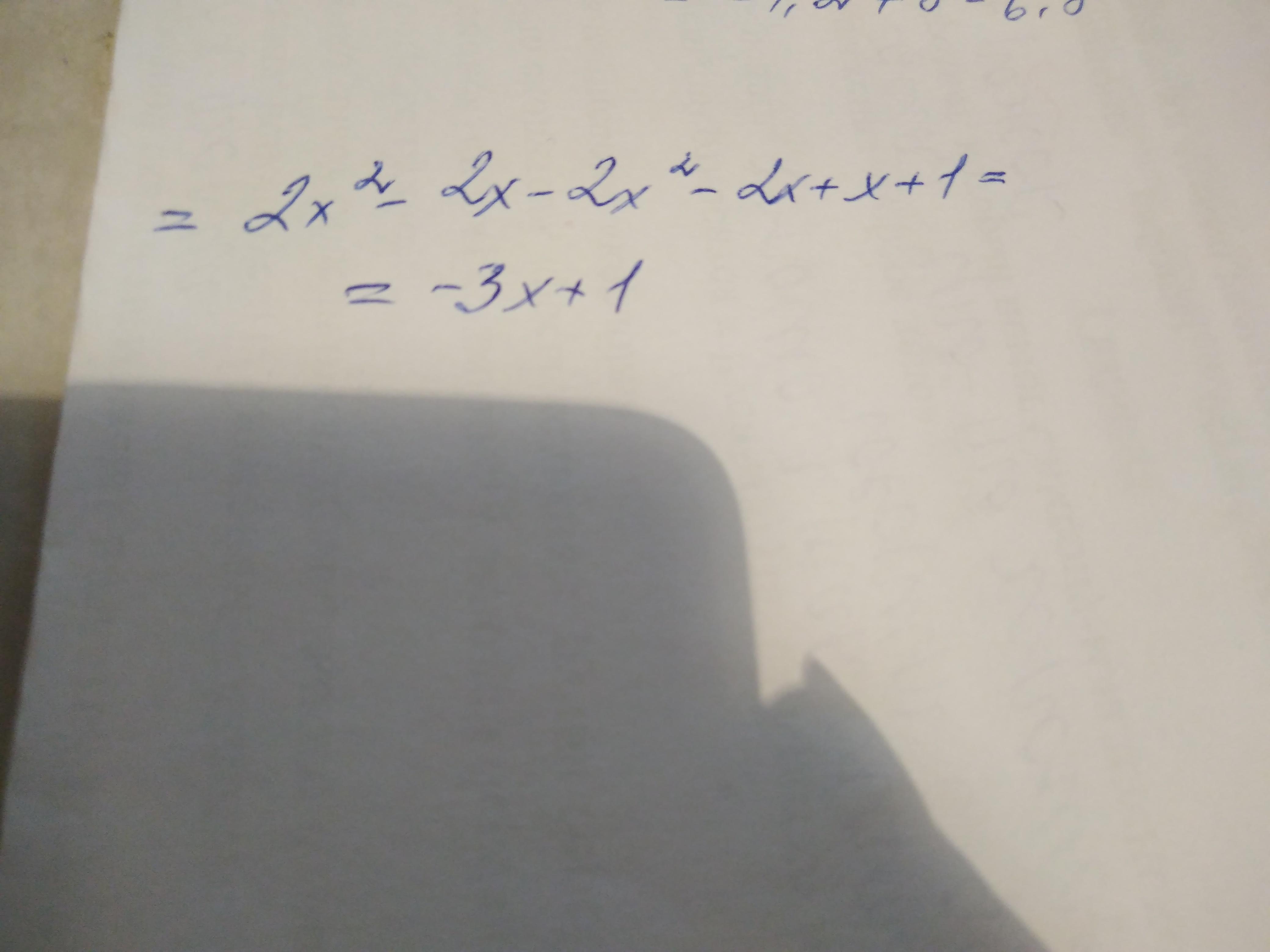 2x(x-1) - (2x-1)(x+1) = 2х^2 - 2х - (2х^2 + 2х - х - 1) = 2х^2 - 2х - 2х^2 - 2х + х + 1 = - 3х + 1.