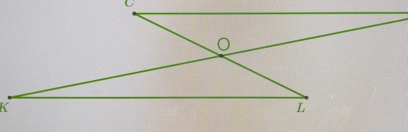 Точка пересечения 0 — серединная точка для обоих отрезков KD и LC.