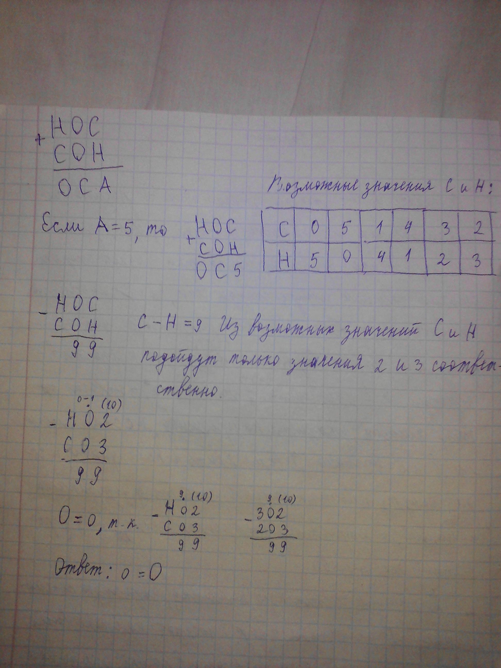 НОС + COH = ОСА. НОС - COH = 99. A = 5.