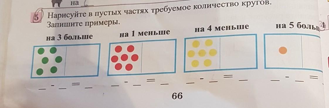 На сколько больше или меньше, соответственно прибавляешь или отнимаешь от кол-во кружков или прибавляешь и рисуешь