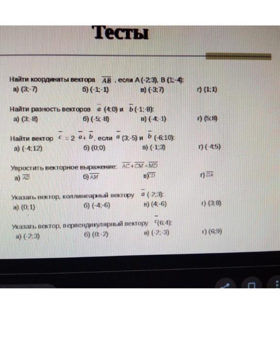 Координаты вектора это разница соответствующих координат его конечной точки и начальной точки.