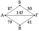 из неравенства треугольников следует, что a+b>c , на рисунке же 87+30=117<145 и 79+41=120<145 --> не существует таких дорог , с такими размерами... Задача некорректна...