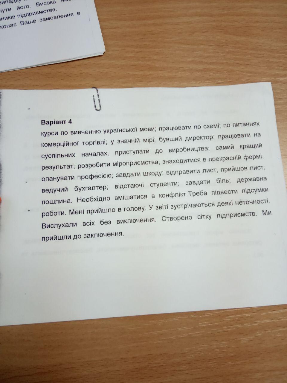 Курси з вивчення української мови; працювати за схемою; з питань комерційної торгівлі; значною мірою; колишній директор; працювати на громадських засадах; розпочати виробництво; перебувати у прекрасній формі; опанувати професію; завдати шкоди; відпривити листа; надійшов лист; провідний бухгалтер; відстаючі студенти; завдати болю; державне мито.