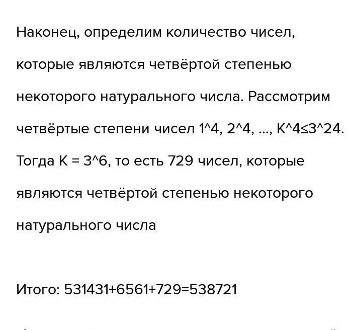 Мистер Фокс перебирал в уме подряд все натуральные числа от 1 до 3^24 . В случае, если текущее число оказывалось квадратом некоторого натурального числа, кубом некоторого натурального числа или четвёртой степенью некоторого натурального числа, он записывал это текущее число в записную книжку. Сколько чисел выписал мистер Фокс?
