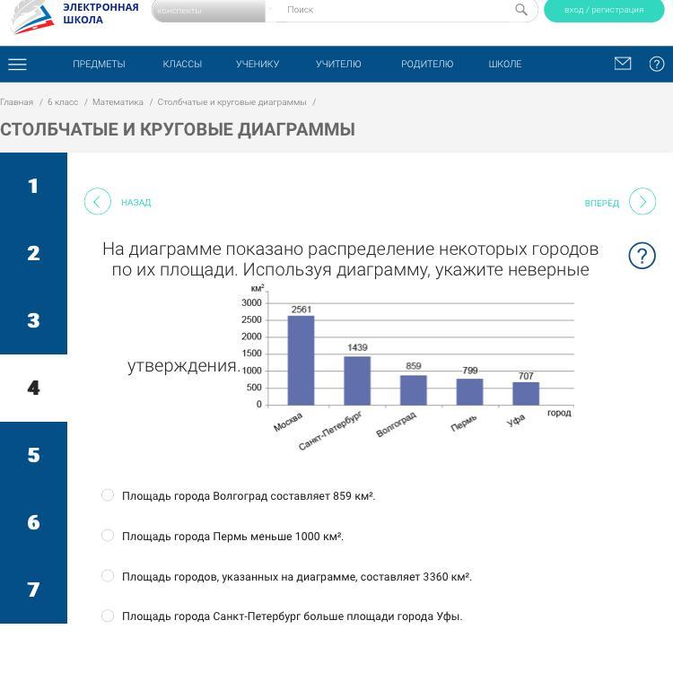 Неверное утверждение - это "Площадь городов, указанных на диаграмме, составляет 3360"