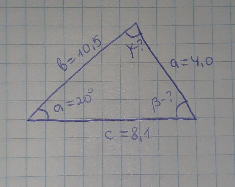 Досить цікаве рішення, а чому ви не використали відношення протилежної сторони до сінуса кута? Один кут є, сторони теж є, знайдемо другий кут, а потім 180 - суму двох кутів, абознов складемо пропорцію з сторін та їх відношення до сінусу третього кута. В цьому і є сенс теореми сінусів. Я подякую за обгрунтовану відповідь.