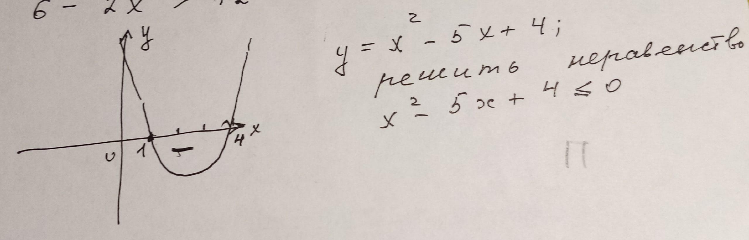 х принадлежит [1; 4], где 1 и 4 - корни уравнения х^2-5х+4=0