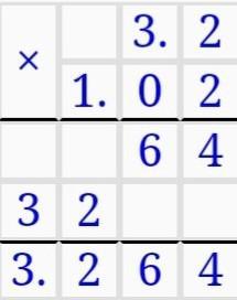 Почему при умножении 3,2 на 1,02 число 32 пишется не под 6, а в других двух клетках?