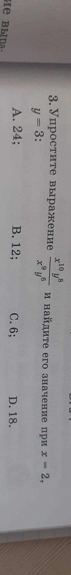 x¹⁰y⁸/x⁹y⁶=xy² x=2, y=3