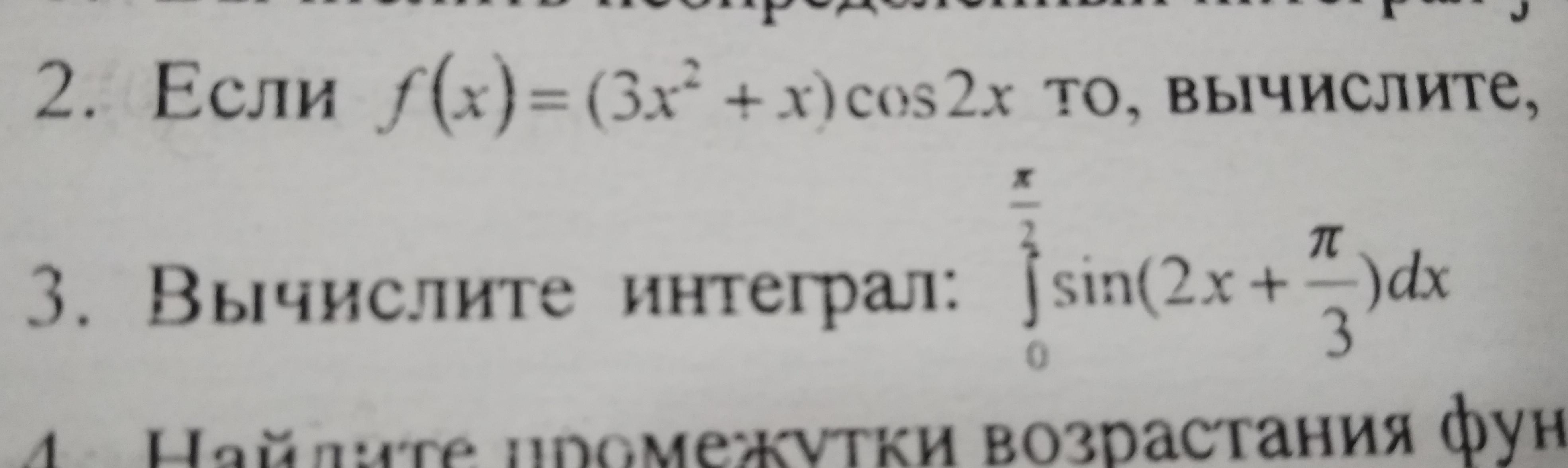 Объяснение: ∫ (от 0 до π/2) Sin (2x+π/3)dx= - 1/2·Cos (2x+π/3) (от 0 до π/2) = - 1/2·Cos (2·π/2 + π/3) + 1/2·Cos (2·0 +π/3) = - 1/2·Cos (π + π/3) + 1/2·Cos π/3 = - 1/2· ( - Cos π/3 ) + 1/2·Cos π/3 =1/2·Cos π/3+ 1/2·Cos π/3 = Cos π/3 = 1/2