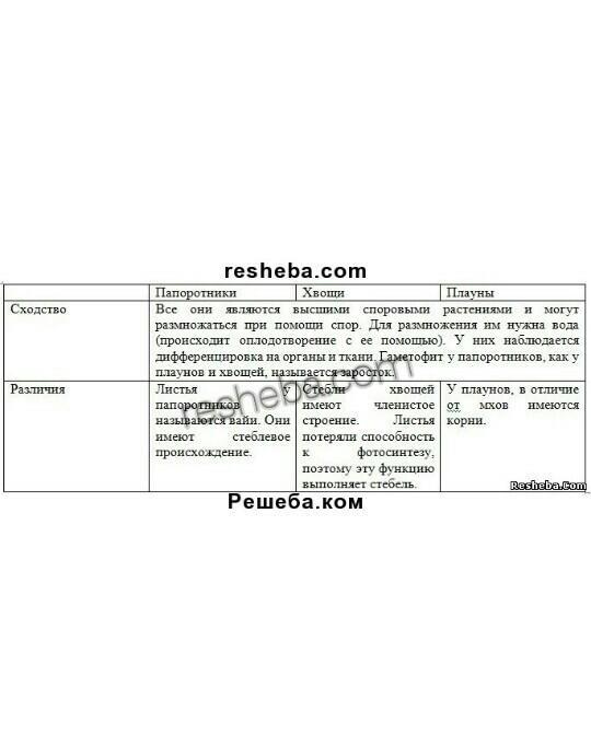4. В строении гаметофита. У хвощей - раздельнополый, у папоротникообразных - обоеполые