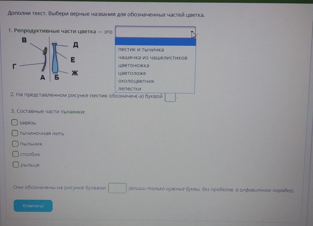 3 вопрос неправильно,вы написали про пестик,а нужно про тычинку