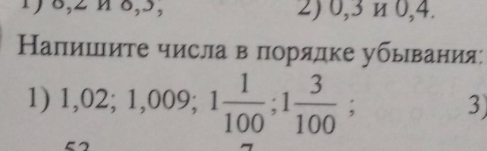 1 и 3/100; 1 и 2/100; 1 и 0.2; 1.009
