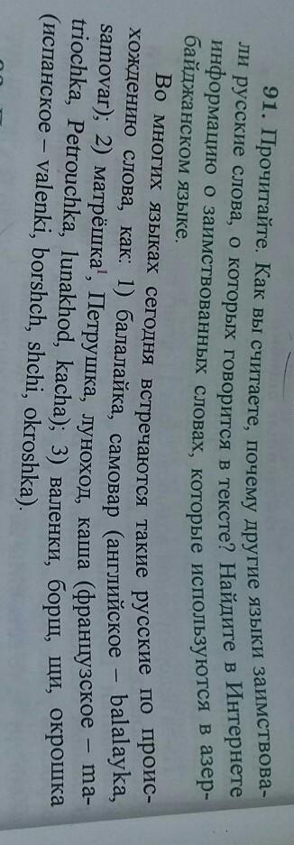 Прочитайте Как вы считаете почему другие языки заимствовали русские слова о которых говорится в тексте найдите в интернете информацию о заимствованных словах которые используются в азербайджанском языке