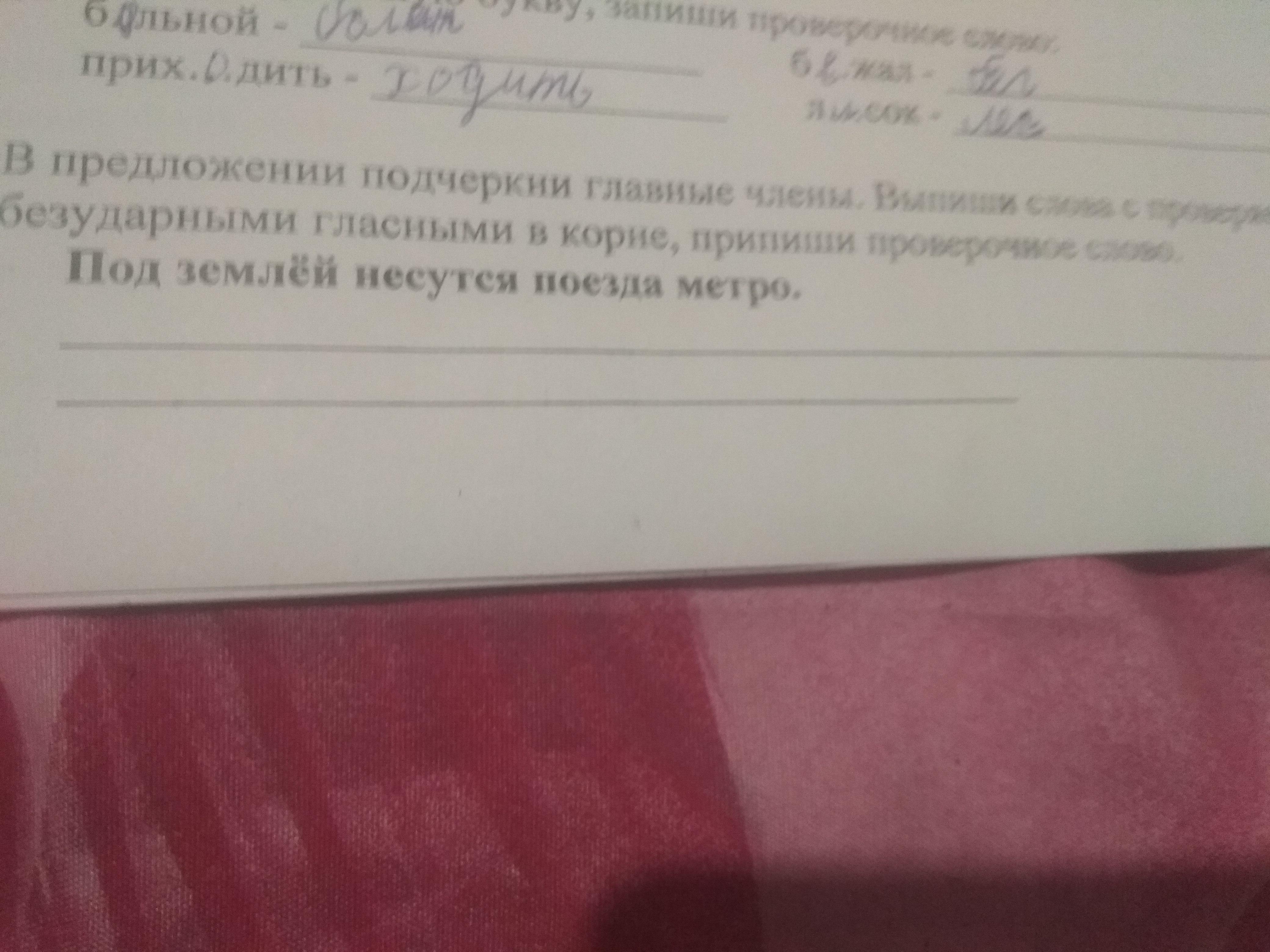 В предложении подчеркни главные члены.выпиши слова с проверяемыми безударными гласными в корне,пропиши проверочное слово.