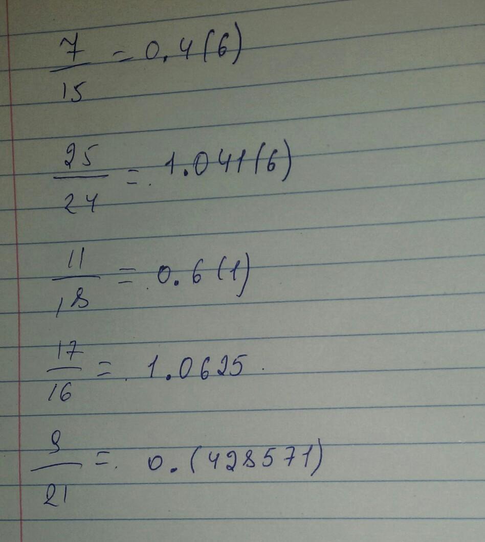 3. Данные дроби запишите в виде десятичных дробей. Запишите вид переодической десятичной дроби.