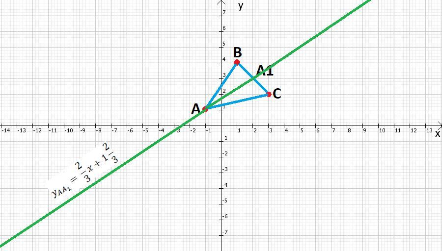 2) Уравнение медианы AA₁ будем искать в виде y=kx+b.