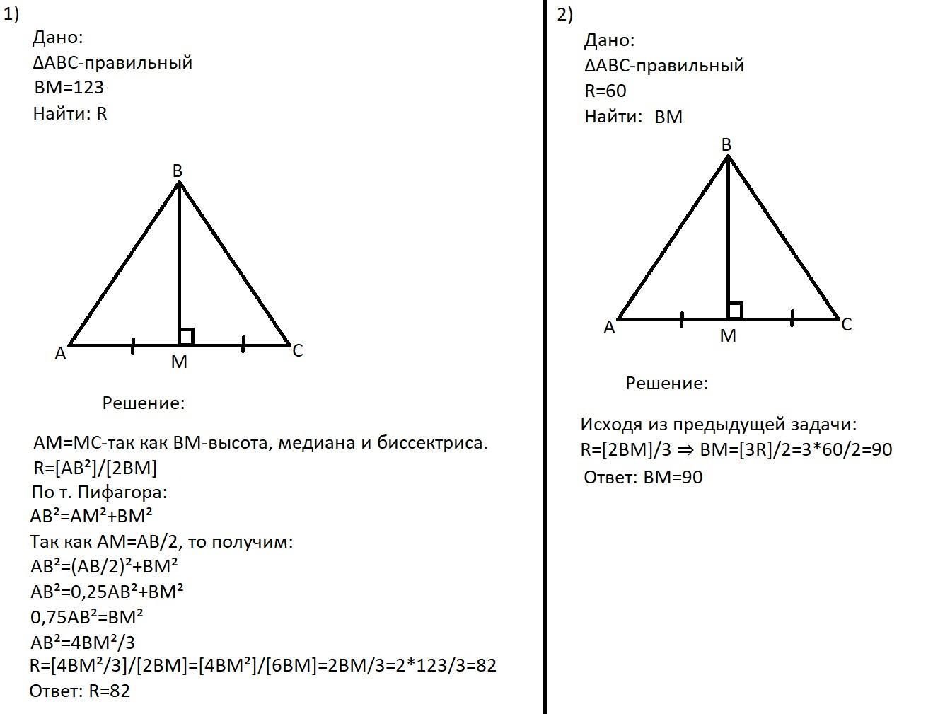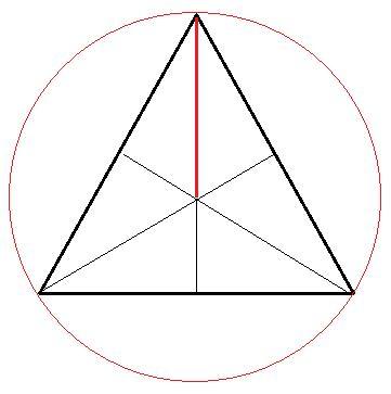 В равностороннем треугольнике медиана, высота и биссектриса к любой стороне совпадают. То есть медианы являются серединными перпендикулярами к сторонам. А точка пересечения медиан является центром описанной окружности.