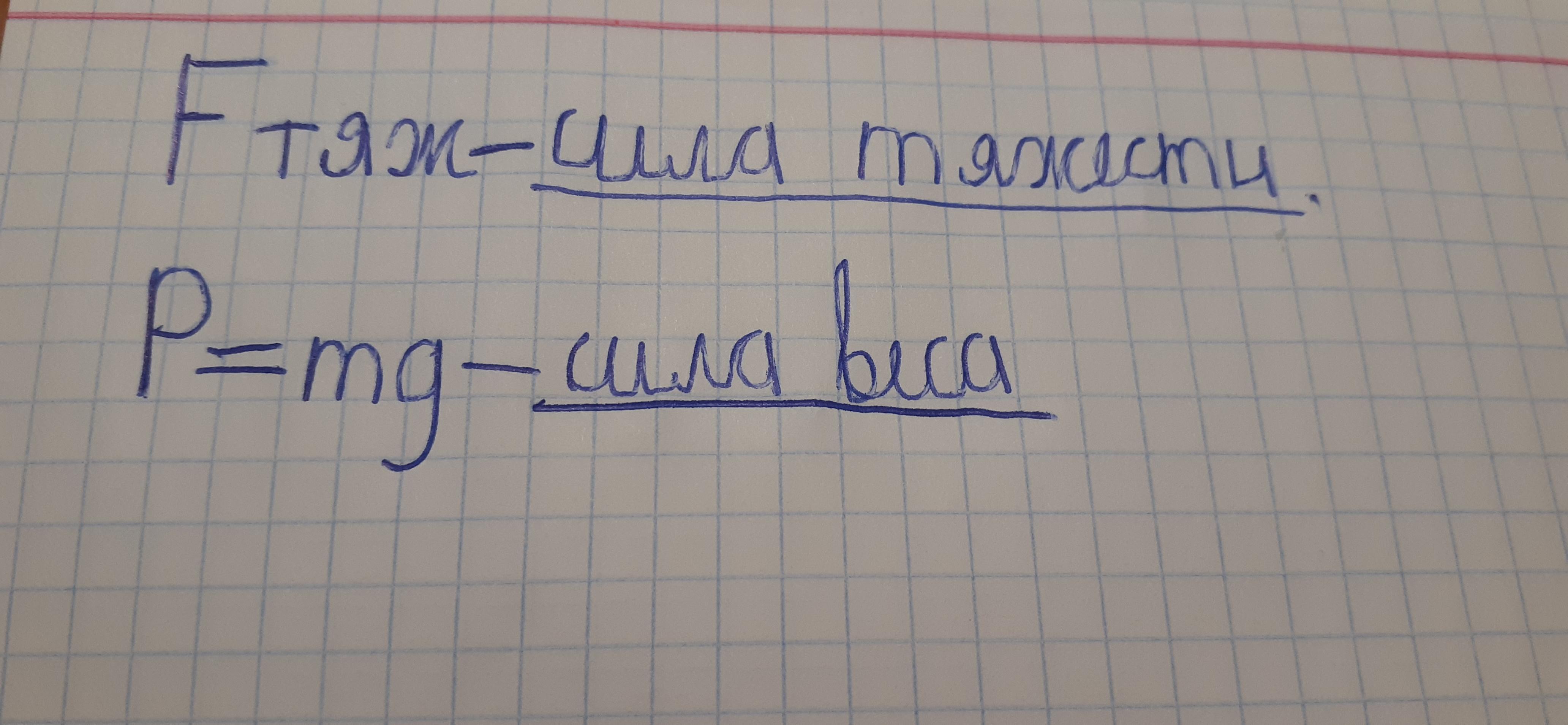 Над F. Это стрелка называется вектор. Сила тяжести и вес- векторные величины,т.к. у них есть направление(вниз).