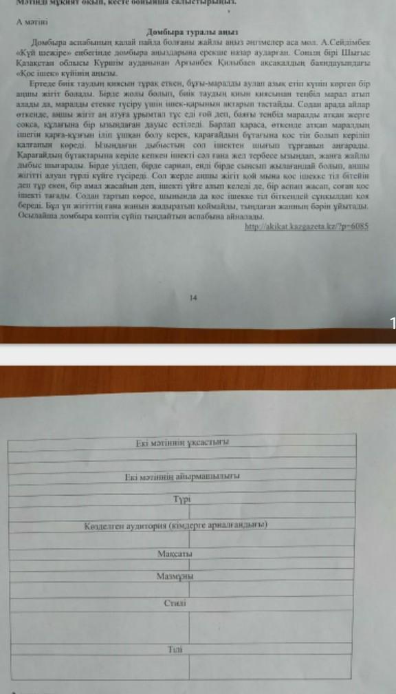 Мақсаты: Домбыра туралы қосымша мәлімет беру