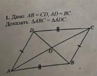 Так как AB=CD, AD=BC, AC-общая сторона, то по третьему признаку равенства треугольников ABC=ADC