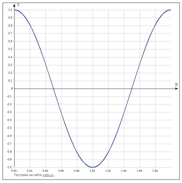 г) cos x >0 при [ 0, π/2] и [3π/2, 2π] ,