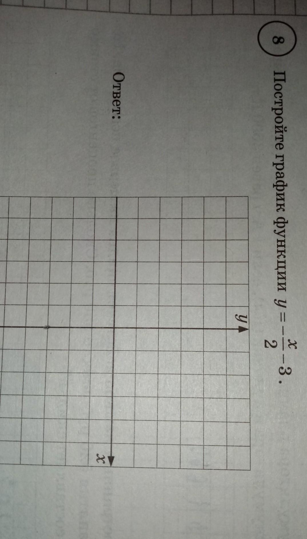 Берёшь любой х (не очень большой), подставляешь, находишь у. Ставишь ту точку на координаты. находишь вторую точку. Делаешь то же самое и проводишь прямую через эти точки. Вуаля. Все графики вида y = kx + b можно так построить. Тут k = -1/2, b = -3