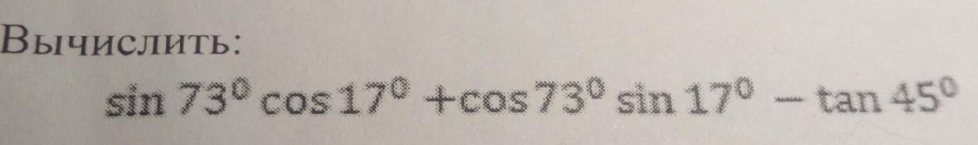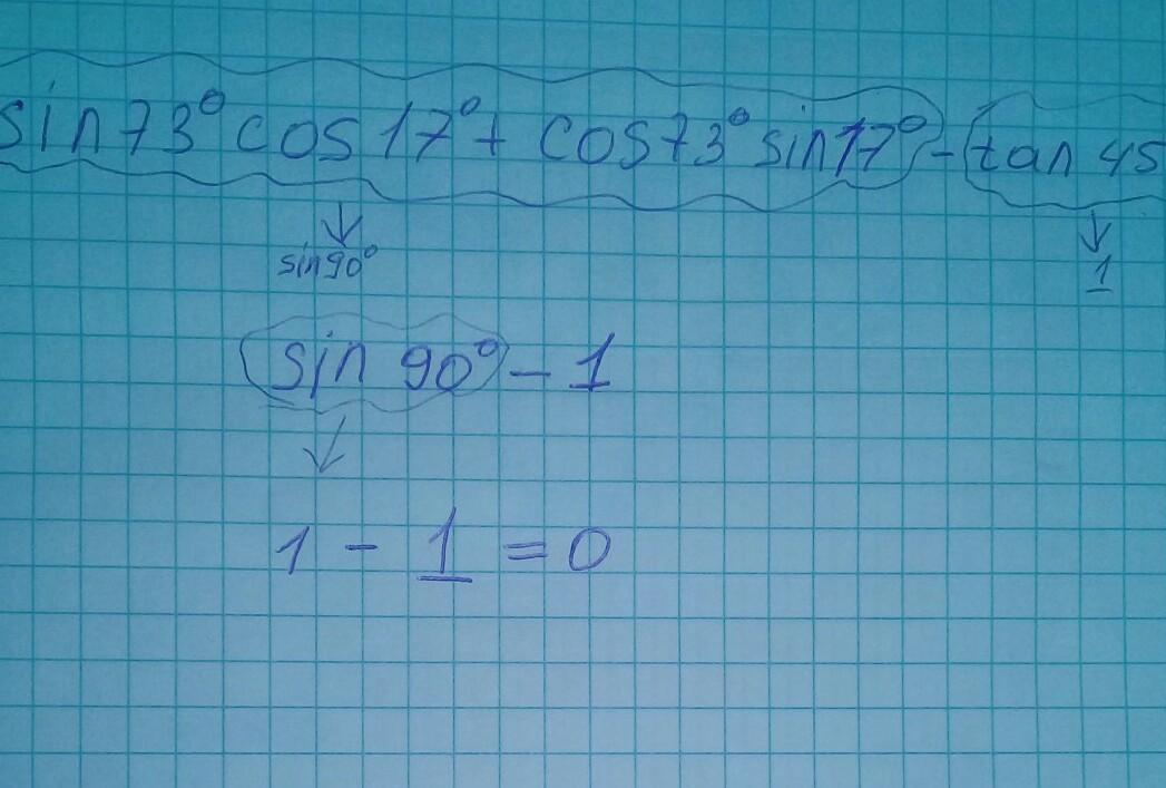 sin73°cos17°+cos73°sin17°-tan45°=0