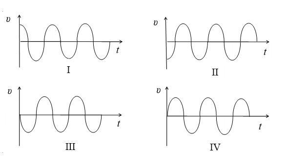 Уравнение колебаний имеет вид: x = Аsin(ωt + α). Какой из приведенных на рисунке графиков представляет зависимость скорости от времени, при условии, что α = 0?