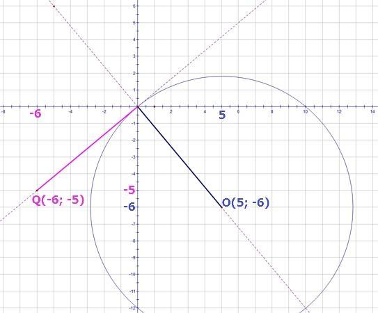 координаты центра данной окружности (5; -6); при повороте радиус окружности не изменится (r²=61), а центр переместится в точку с координатами (-6; -5)