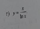 f(x)=\frac{x}{lnx}\\f'(x)=\frac{x'*lnx-x*(lnx)'}{ln^2x}\\f'(x)=\frac{lnx-x*\frac{1}{x} }{ln^2x}\\f'(x)=\frac{lnx-1}{ln^2x}