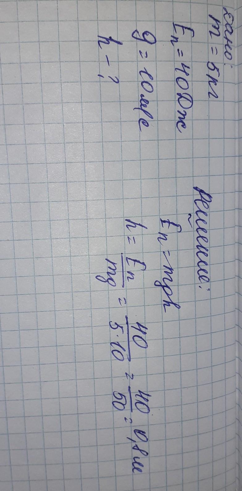 ДАЮ 60 БАЛЛОВ!!! На яку висоту треба підняти вантаж масою 5 кг, щоб його потенціальна енергія збільшилась на 40 Дж?