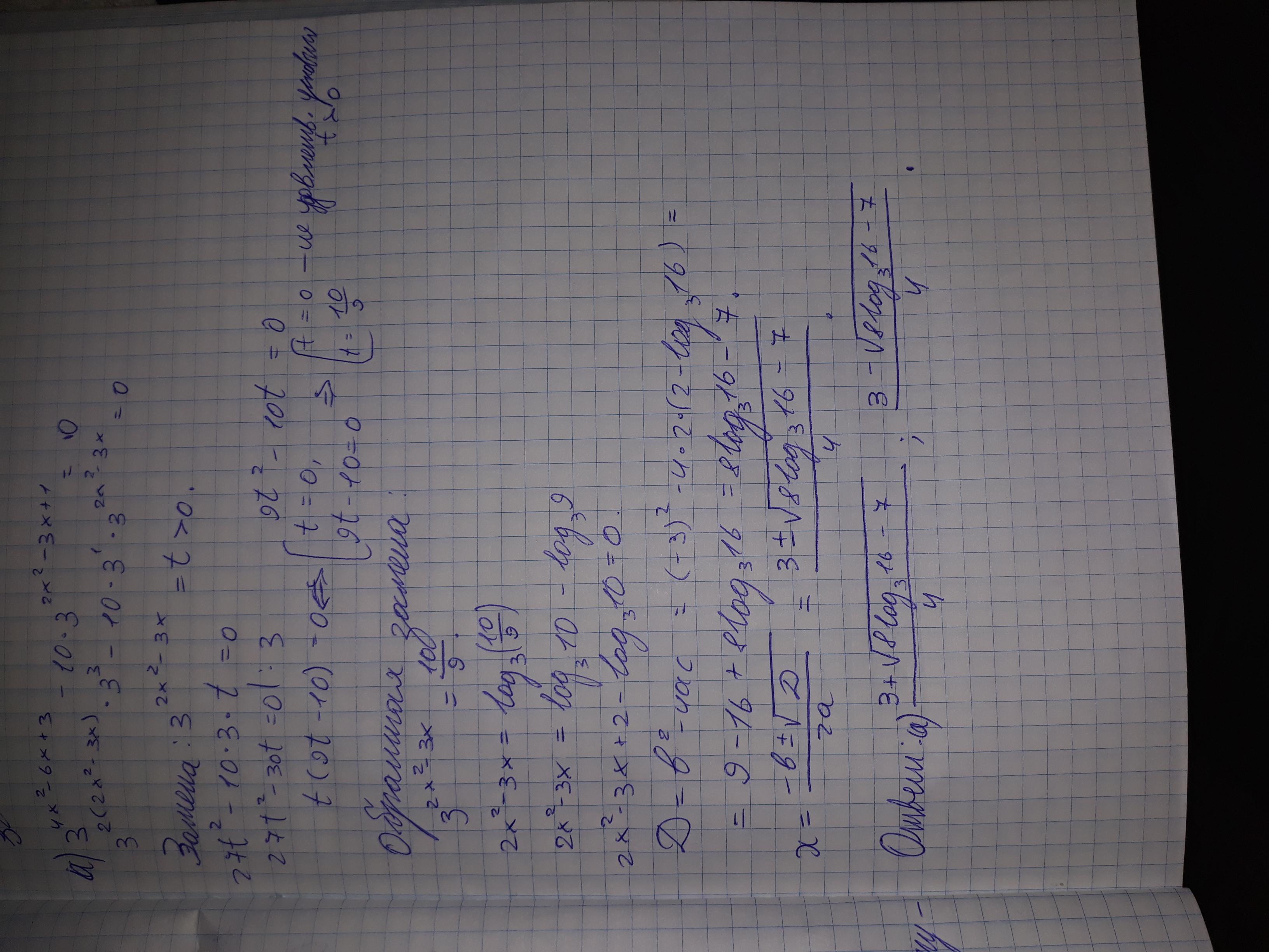 2)(a)3^4x^2-6x+3 - 10*3^2x^2-3x+1 = 0 (б)[log снизу 3 сверху 1/2 ; log снизу 3 сверху 5]