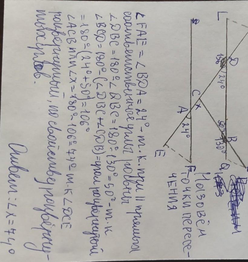 х = 360° - 156° - 130° = 74°.