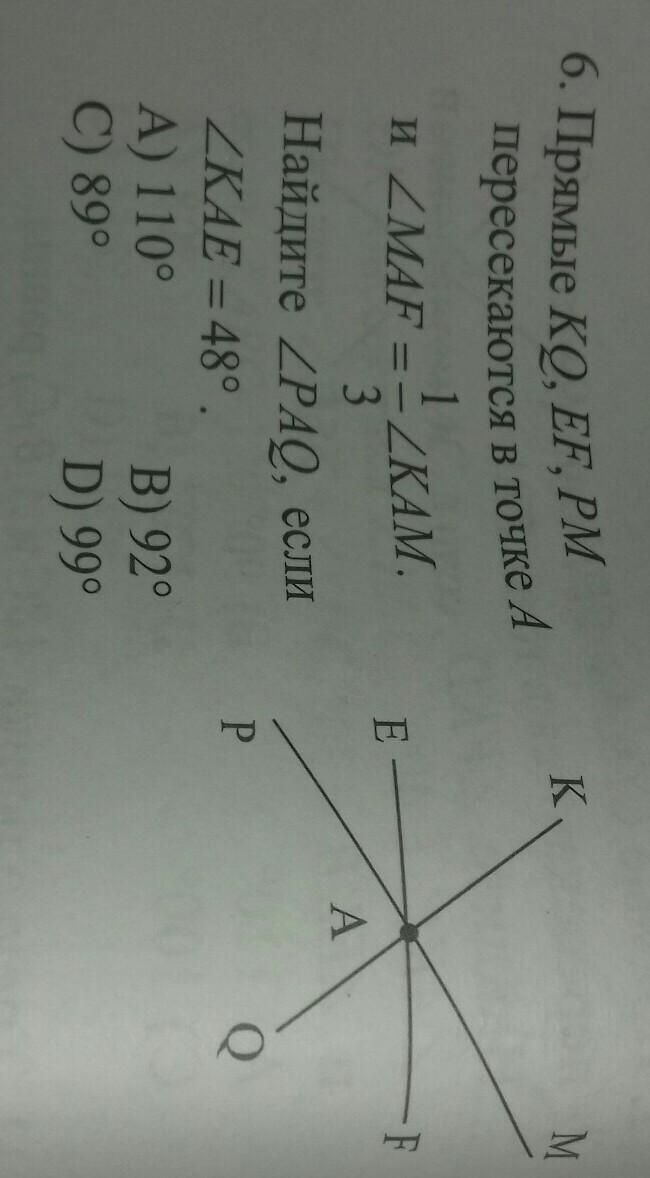 Берём линейку, прикладываем к любой стороне угла PAQ, если выходит, но не на много, значит выбираем самый меньший вариант, который больше 90.