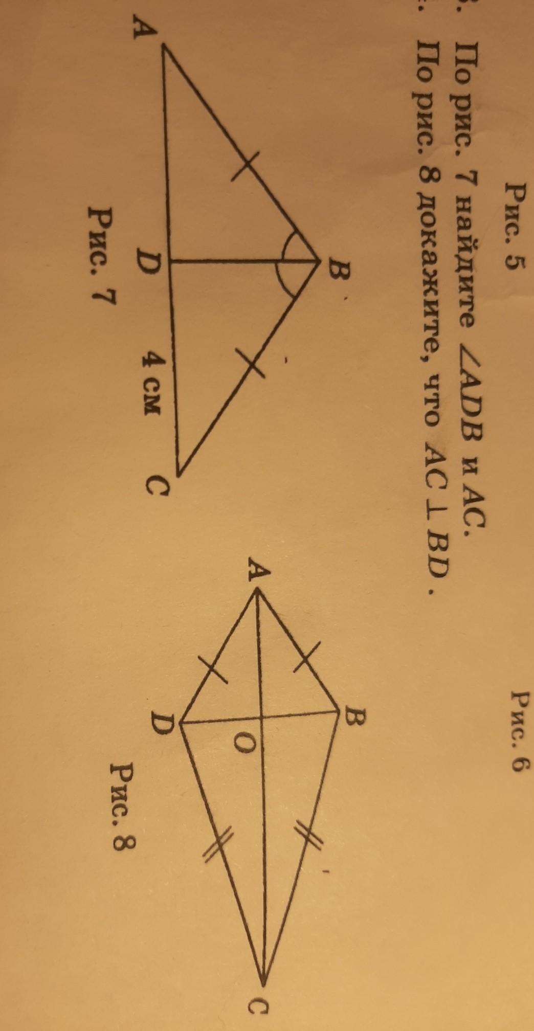 АС перпендикулярно ВD так как прямоугольник равнобедренный, это мы видим по значкам на АВ и ВС. В равнобедренном прямоугольнике углы при основании равны, на рисунке отмечены, что углы АBD и CBD между собой равны. Значит углы ADB и CBD также равны между собой.