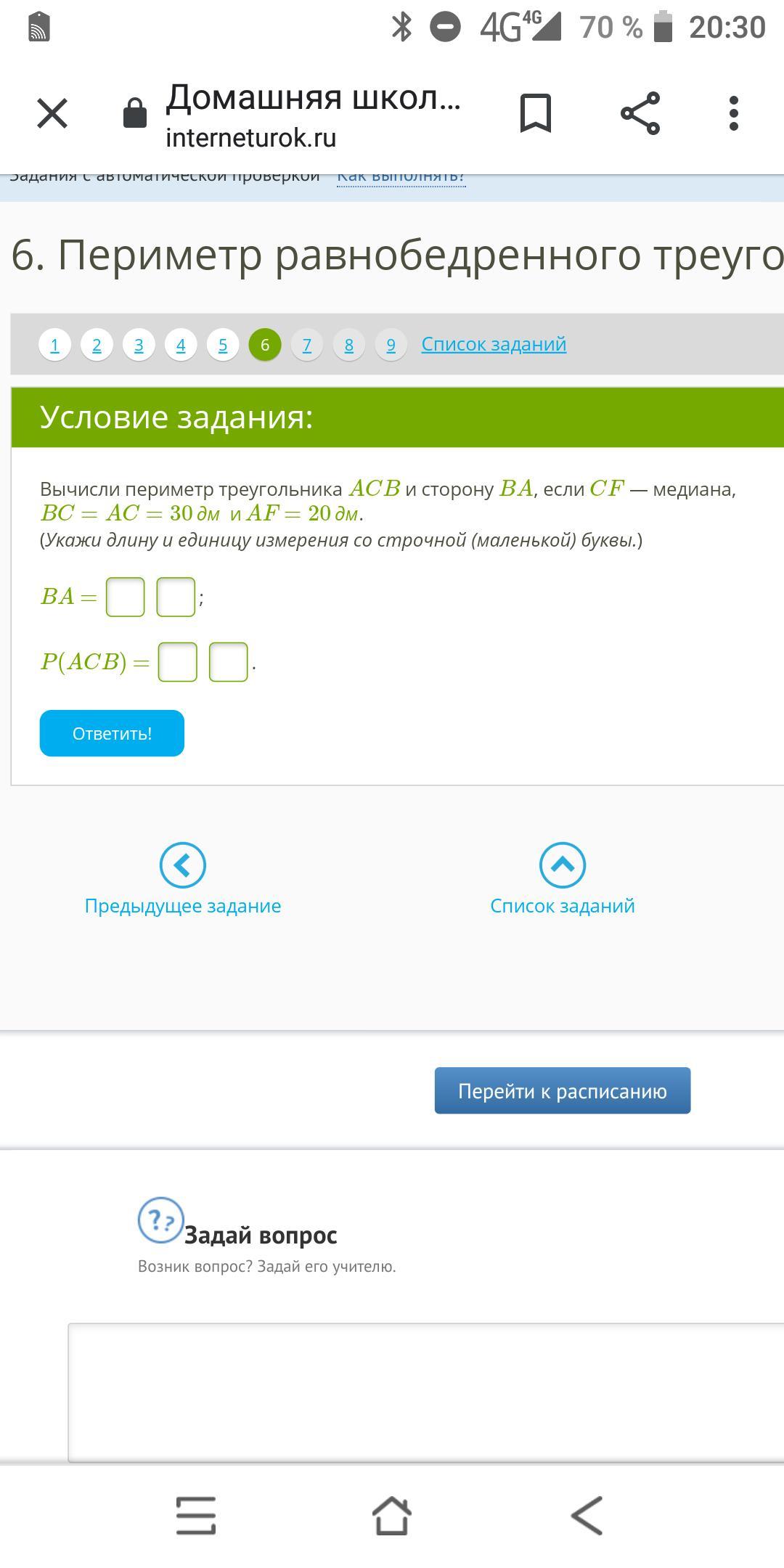 Вычисли периметр треугольника ACB и сторону BA, если CF — медиана,