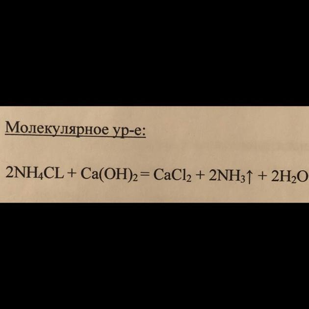 2NH4Cl + Ca(OH)2= CaCl2+2NH3↑+2H2O - молекулярное уравнение