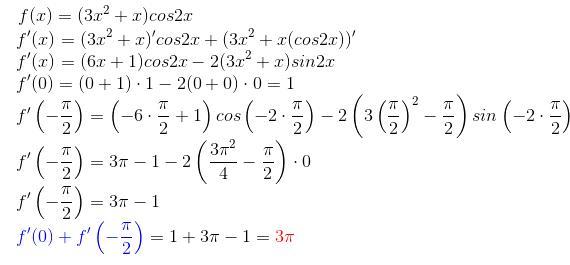 f`(-pi/2))=(-3pi+1)*(-1)+(3pi/4-pi/2)*0=3pi-1