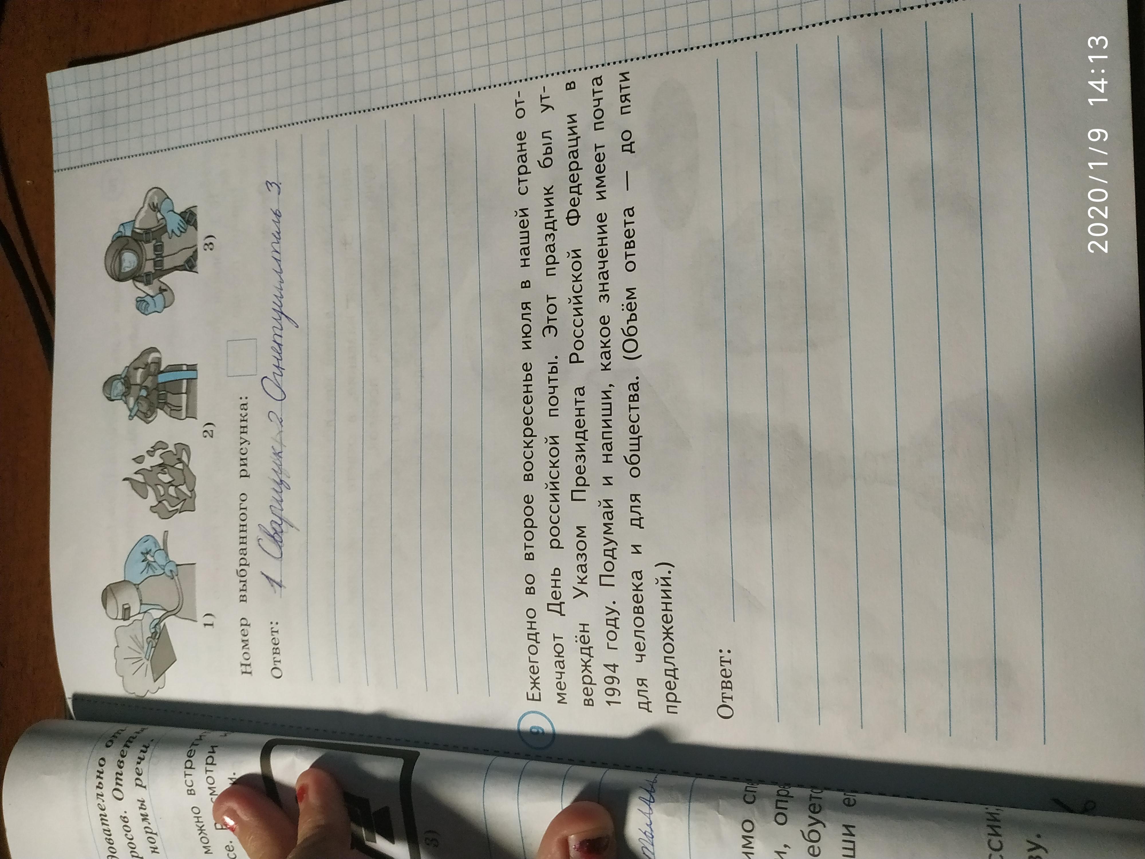 9 номер: Почта в нашем мире имеет большое значение. То есть, с помощью почты мы можем общаться с близкими и друзьями на расстоянии. По почте мы можем отправлять посылки , подарки или что-то передавать.