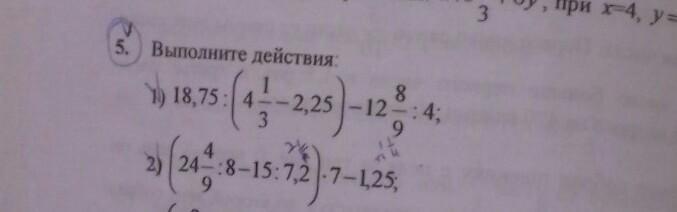 2) (24 4/9÷8-15÷7,2)×7-1,25=5 1/6