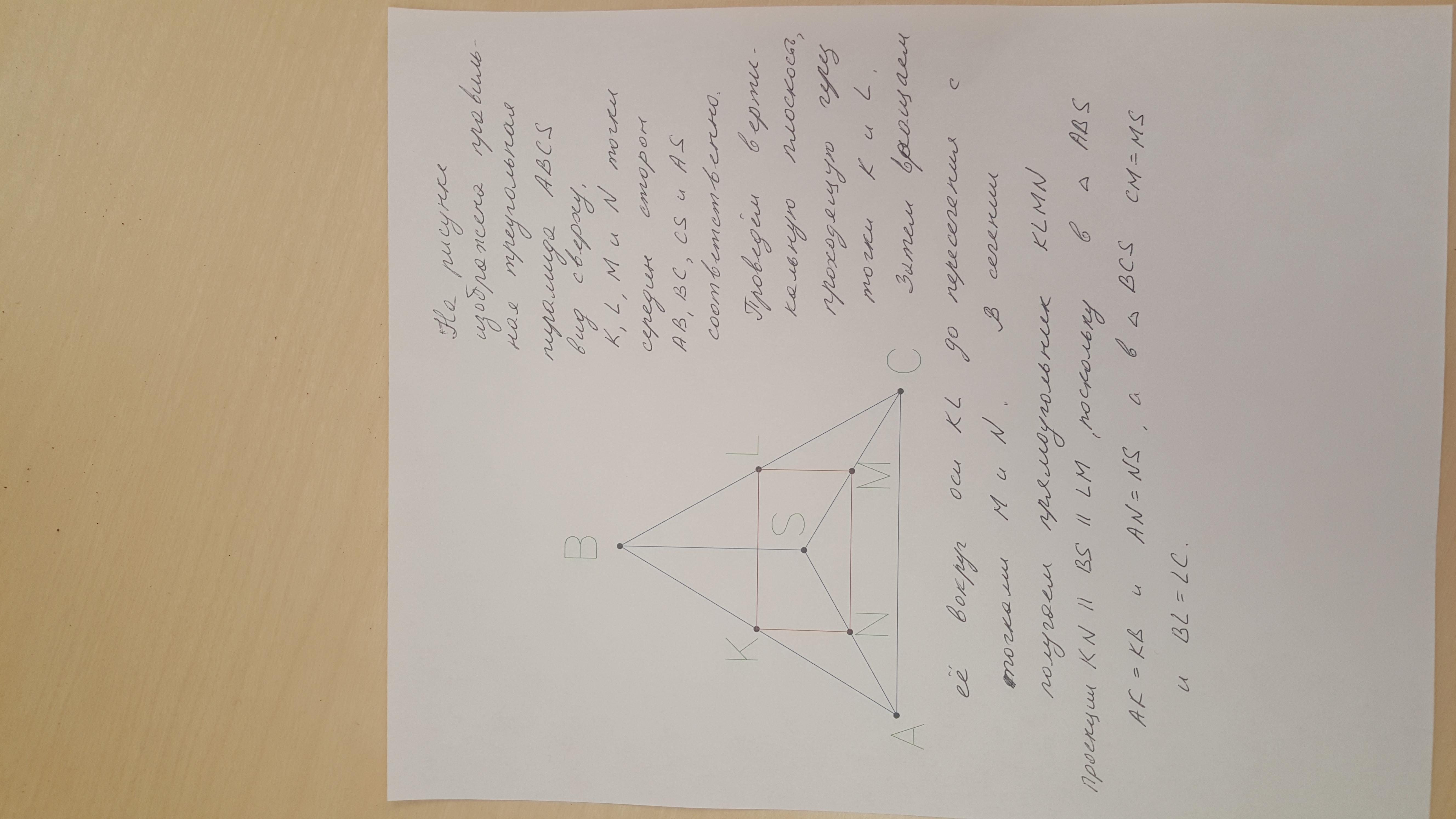 Построить сечение треугольной пирамиды ABCS, проходящего через середины сторон