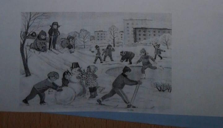 мне кажется что рисунок о том,что дети зимой веселятся,играются,лепят всякие снеговика из снега. а название можно либо Игры зимой ну или Чудесная зима, Чудесный месяц,